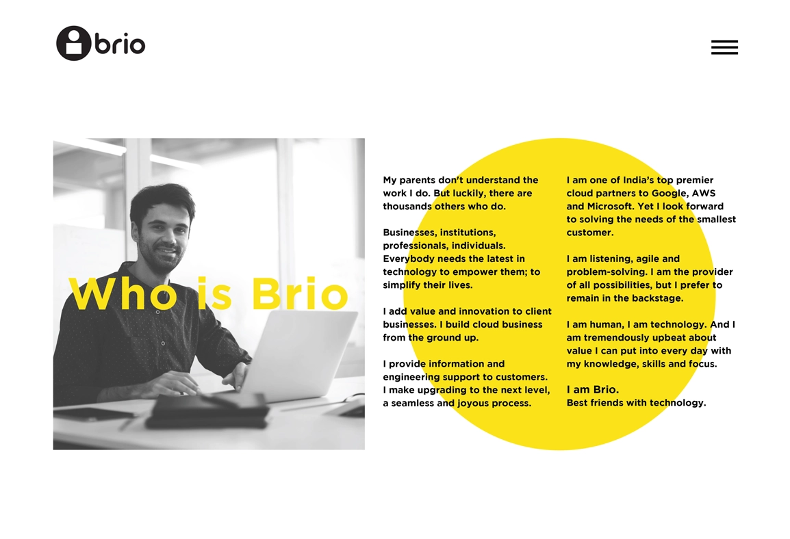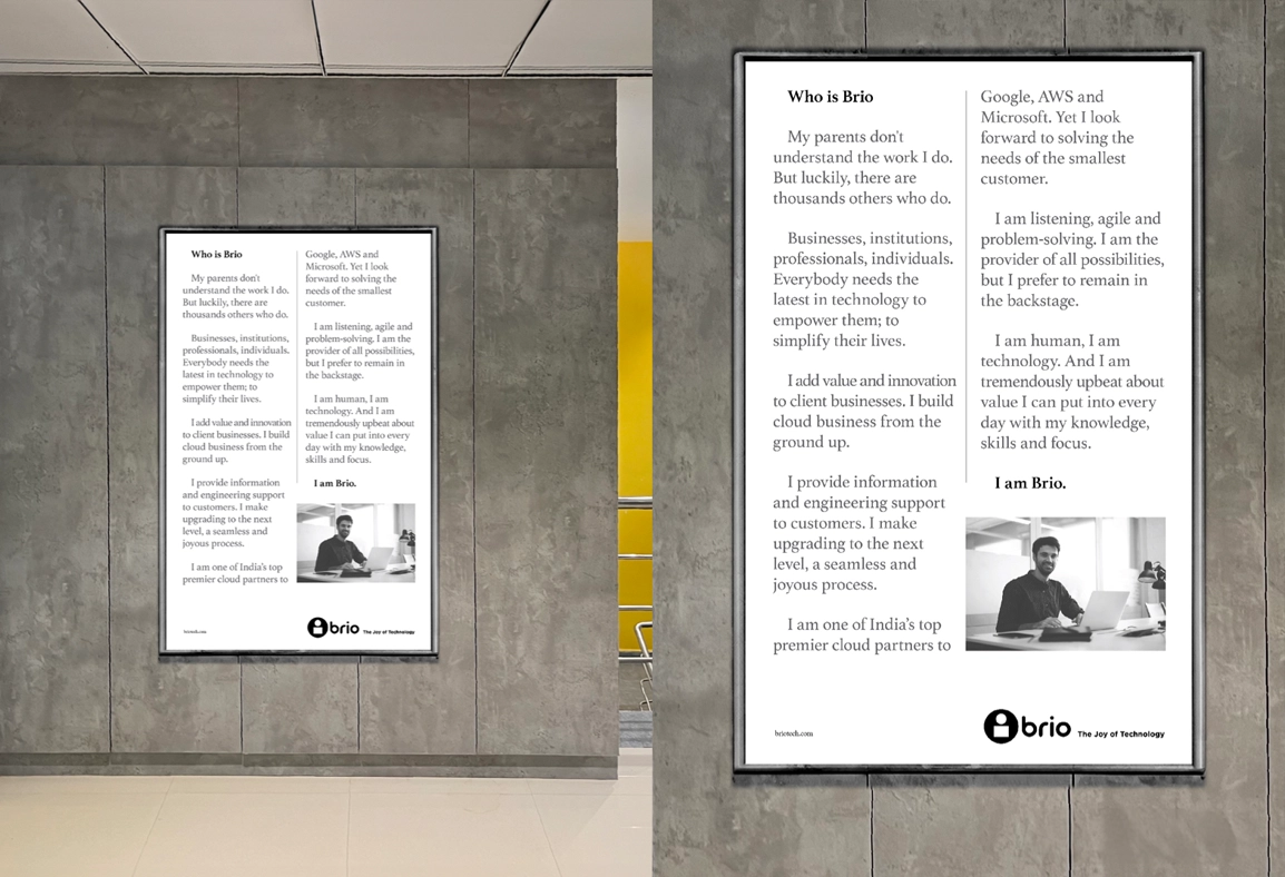 Brio believes technology should feel like joy, not a chore, and Partner Brand Solutions helped give that belief its voice. We began by defining the brand purpose with clarity and warmth: technology is a wondrous tool, and when used with enthusiasm, it empowers people to feel capable, fulfilled, and valuable at work. From this came the tagline—The Joy of Technology—a line that captured both spirit and intent. We then built an identity that felt open, human, and optimistic. The design system used clean lines, cheerful forms, and a language free of jargon, creating a brand that spoke with simplicity and genuine warmth.